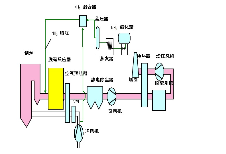 選擇性催化劑還原煙氣脫硝技術(SCR)是采用垂直的催化劑反應塔與無水氨,從燃煤燃燒裝置及燃煤電廠的煙氣中除去氮氧化物(NOX)。具體為采用氨(NH3)作為反應劑,與鍋爐排出的煙氣混合后通過催化劑層,在催化劑層,在催化劑的作用下將NOx還原分解成無害的氮氣和水。