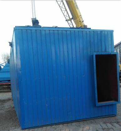 PPC-64-4型防爆氣箱脈沖布袋除塵器為中進(jìn)中出,單倉排列的布置形式。除塵器在寬度方向分為三部分,即進(jìn)出氣流通道和倉室,煙氣流從除塵器一端進(jìn)入進(jìn)氣通道,進(jìn)氣通道截面積依通道內(nèi)流量遞減速率(分別進(jìn)入了布袋倉)設(shè)計(jì)成遞減截面,煙氣流通過通道與布袋倉相通的布袋倉進(jìn)氣門進(jìn)入左右各個布袋倉,經(jīng)布袋過濾后的凈化空氣從布袋上方匯集至布袋倉出氣門通至凈化氣過渡通道,經(jīng)過過渡通道的離線清灰閥進(jìn)入除塵器出氣通道而從除塵器的另一端排出。